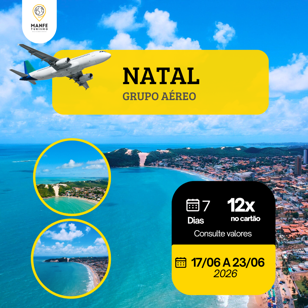 23/06 – NATAL / PORTO ALEGRE / CIDADES ORIGENS: Café da manhã e manhã livre. As 12 horas check-out no hotel. Tempo livre para almoço. Em horário a combinar saída de transfer regular para o aeroporto de Natal. Embarque em vôo de retorno que está previsto para sair as 17:30 mints. Chegada em Porto Alegre prevista para as 23:55mints. Voo com 01 conexão. Retorno a nossas casas e fim dos nossos serviços.