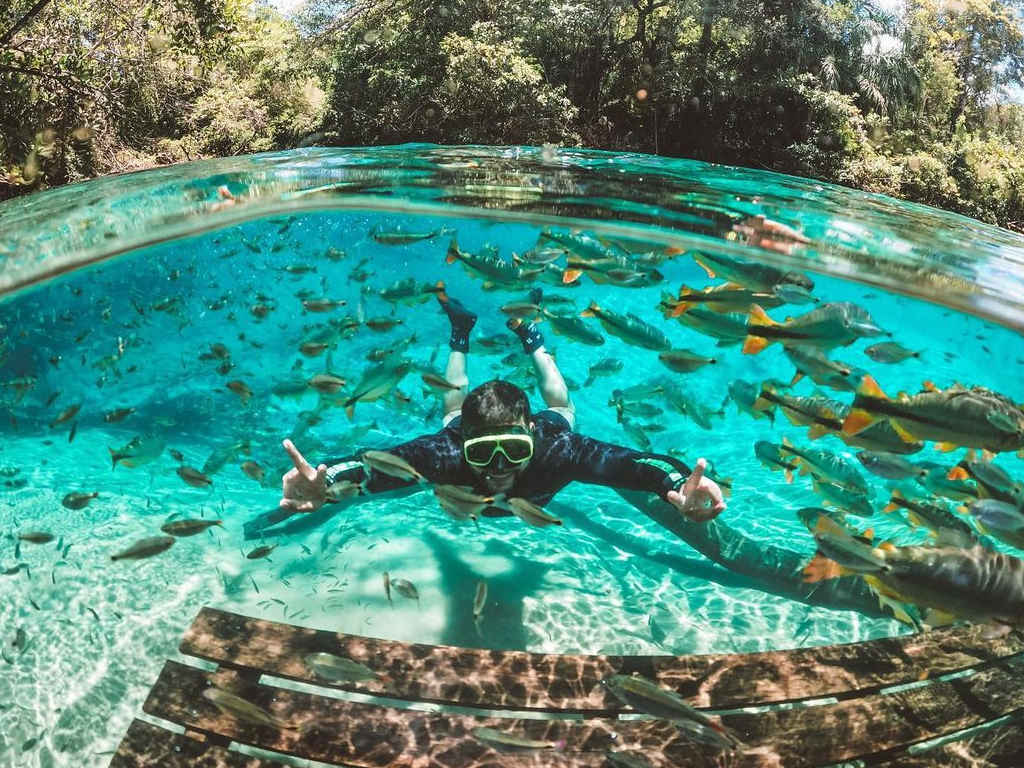 BONITO MS / BALNEÁRIO MUNICIPAL:Café da manhã. Sugerimos antes da ida ao Balneário Municipal o passeio opcional pela Gruta Catedral. As 10:30 mints saída para o Balneário Municipal (Ingresso já incluso), este que é uma área de lazer belíssima com diferentes atividades para passar um tempo agradável em meio a natureza. Tem diferentes opções para serem feitas, entre elas mergulhar e banho pelo Rio Formoso, tomar banho de sol e praticar alguns esportes. O local possui churrasqueiras e mesas, enquanto clientes aproveitam o local motoristas e guia preparam um churrasco para o grupo. A tardinha acomodações. Noite livre. Pernoite em Bonito.