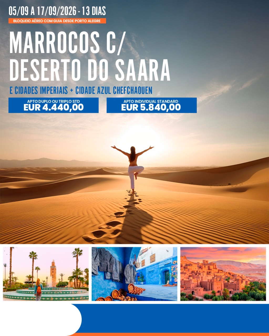 MARROCOS C/ DESERTO DO SAARA e CIDADES IMPERIAIS + CIDADE AZUL